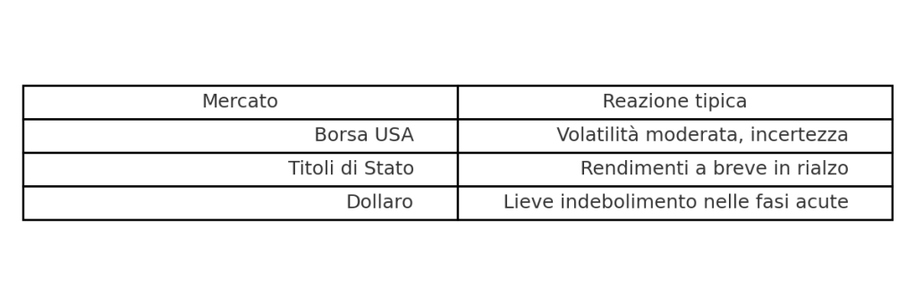 - I mercati reagiscono con volatilità contenuta: più colpiti i bond a breve termine e i settori legati alla spesa pubblica.